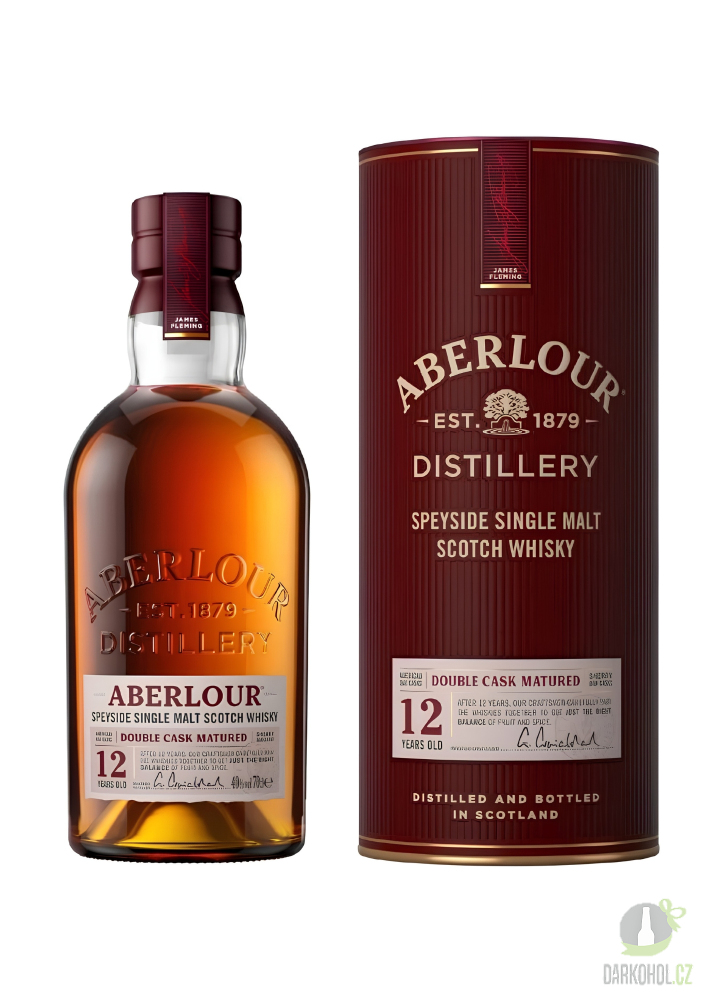 Aberlour 12yo Double Cask Matured je jednou z nejreprezentativnějších a nejoblíbenějších speysidských single maltů světa – a přímým vyjádřením filozofie destilérny Aberlour, která stojí ve vesnici Charlestown of Aberlour na březích řeky Spey v srdci Speyside od roku 1879. Destilérna, jejíž jméno pochází z gaelštiny a znamená „ústí potoka" (odkazující na místní pramen sv. Drostan, jehož voda se tradičně používá při výrobě), je dnes součástí skupiny Chivas Brothers (Pernod Ricard) a patří k nejrespektovanějším jménům speysidské whisky scény.