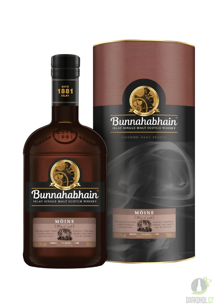 Bunnahabhain Mòine – gaelsky „rašeliniště" – je odvážnou a fascinující odpovědí destilérny Bunnahabhain na otázku: co se stane, když destilérna tradičně proslulá svými nerašelinovými single malty sáhne po těžce rašelinovém sladu a zkombinuje jej se svým charakteristickým přístupem k zrání v sherry sudech? Výsledkem je whisky, která je jedinečná v celém světě islejských single maltů – a která dokazuje, že Bunnahabhain zvládá rašelinový styl stejně mistrovsky jako svůj tradiční nerašelinový charakter.