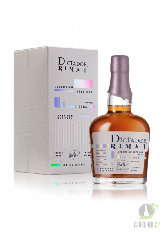 Dictador Rima navazuje na sérii limitovaných ročníkových edic, které vznikají pod odborným dohledem Hernana Parry. Master Blender značky Dictador zde pokračuje ve své koncepci rumů, jež nejprve dozrávají v sudech z amerického dubu a následně jsou dále zušlechťovány v sudech po portském a po sherry.