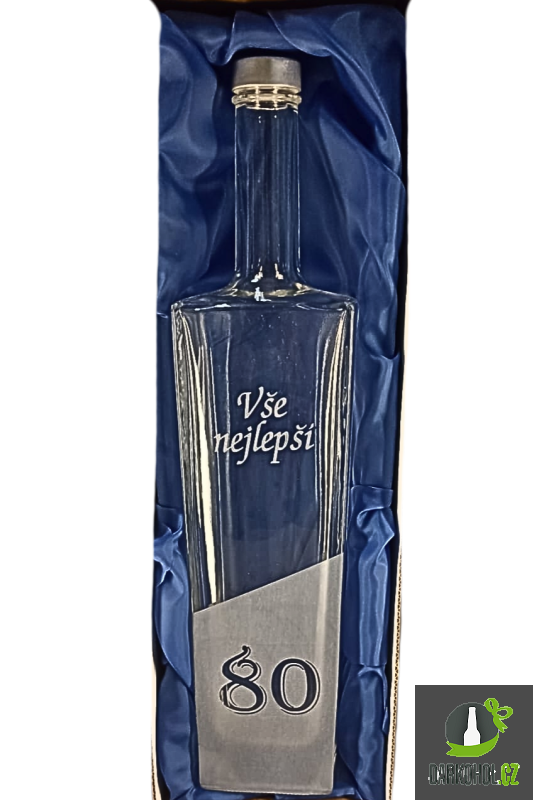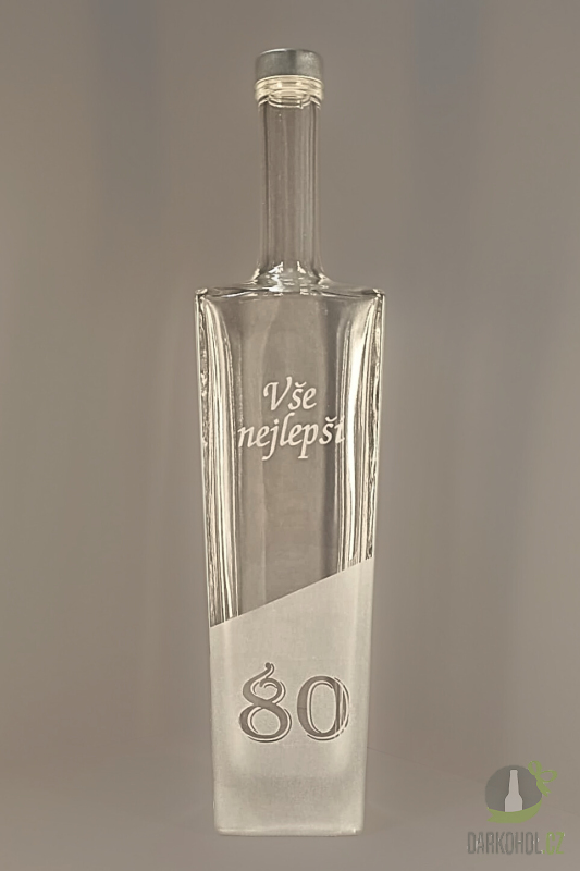 Ručně pískovaná skleněná láhev ve tvaru Axel o objemu 0,7 l s nápisem "Vše nejlepší 80 let"