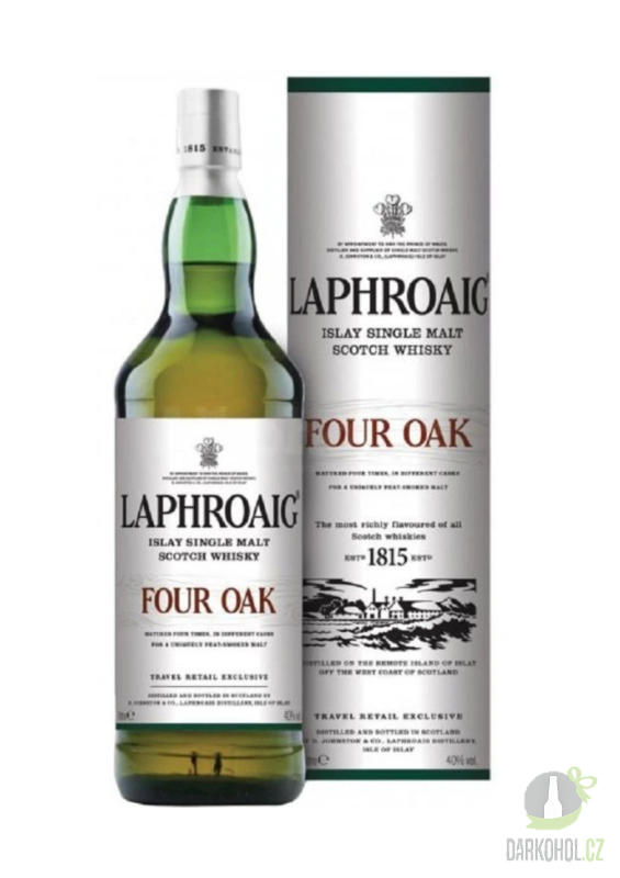 Laphroaig Four Oak je výrazná single malt whisky z ostrova Islay, která vyniká komplexním charakterem formovaným zráním ve čtyřech typech dubových sudů: po bourbonu, quarter cask, virgin oak a european oak. Tento přístup dodává whisky bohatou strukturu, v níž se prolíná typická rašelinová kouřovost palírny s tóny dubového dřeva, jemné sladkosti a kořenitých nuancí. Výsledkem je plná a výrazná whisky, která zachovává nezaměnitelný styl značky Laphroaig a zároveň nabízí větší hloubku a vyváženost.