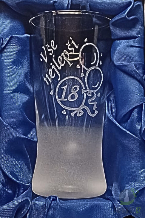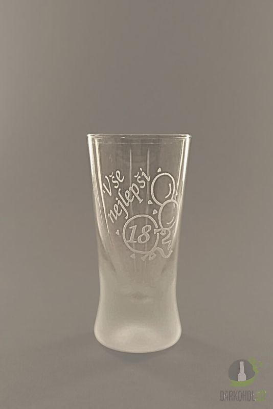 Ručně pískovaný skleněný panák ve tvaru kónickém o objemu 0,05 l s nápisem "Vše nejlepší" s motivem Balonků s 18