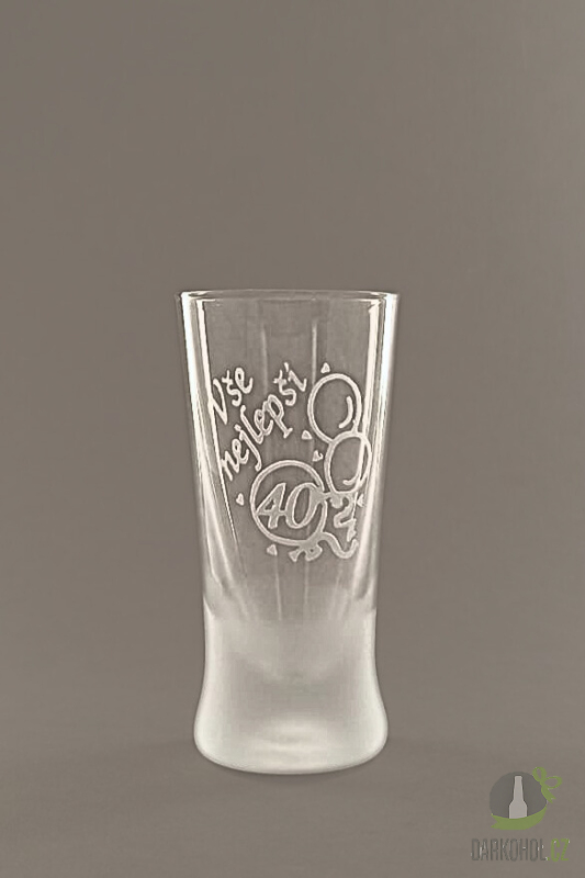 Ručně pískovaný skleněný panák ve tvaru kónickém o objemu 0,05 l s nápisem "Vše nejlepší" s motivem balonku s 40