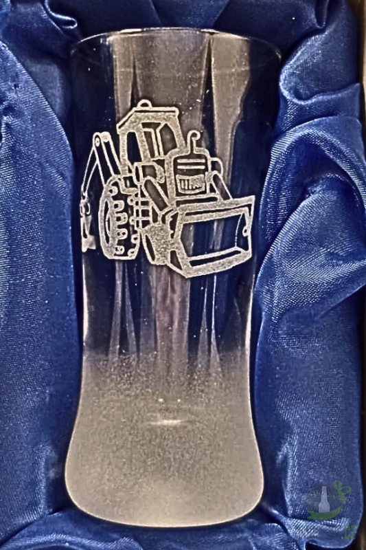 Ručně pískovaný skleněný panák ve tvaru kónickém o objemu 0,05 l s motivem Bagru