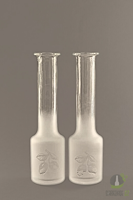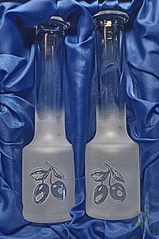 Ručně pískovaný skleněný panák ve tvaru Zkumavky o objemu 0,05 l s motivem Švestek