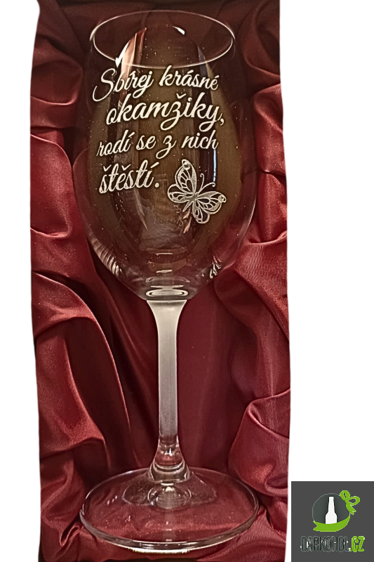 Ručně pískovaná sklenice o objemu 0,35l s nápisem ’’ Sbírej krásné okamžiky, rodí se z nich štěstí’’
