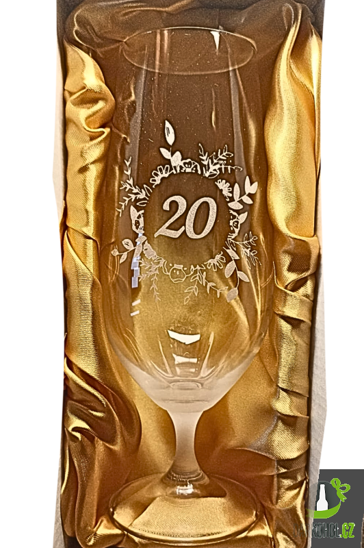 Ručně pískovaná sklenice na pivo ’’20’’ s motivem květin o objemu 350ml.