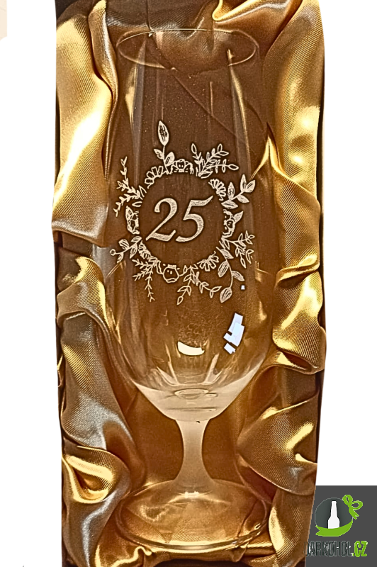 Ručně pískovaná sklenice na pivo ’’25’’ s motivem květin o objemu 350ml.