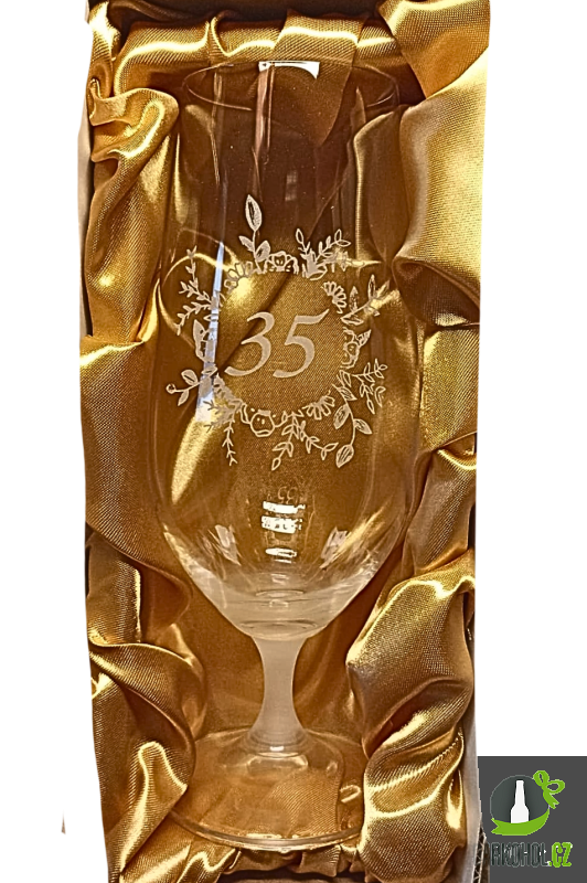 Ručně pískovaná sklenice na pivo ’’35’’ s motivem květin o objemu 350ml.