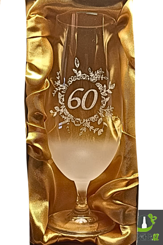 Ručně pískovaná sklenice na pivo ’’60’’ s motivem květin o objemu 350ml.