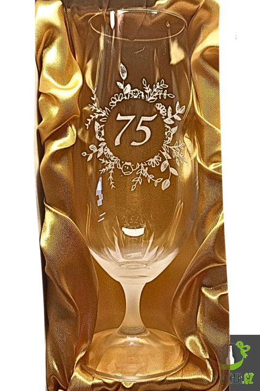 Ručně pískovaná sklenice na pivo ’’75’’ s motivem květin o objemu 350ml.