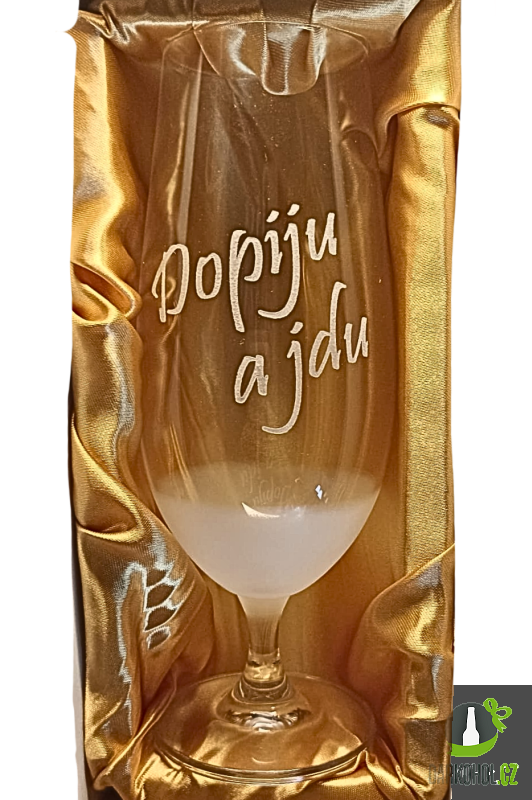 Ručně pískovaná sklenice na pivo s textem ’’Dopiju a jdu’’ o objemu 350ml.