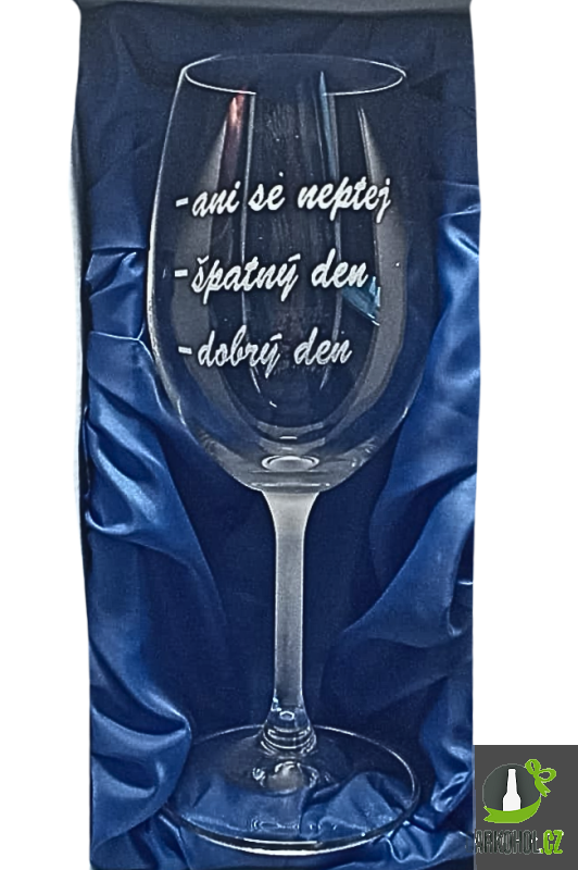 Ručně pískovaná sklenice o objemu 0,35l s nápisem ’’ Ani se neptej, špatný den, dobrý den’’