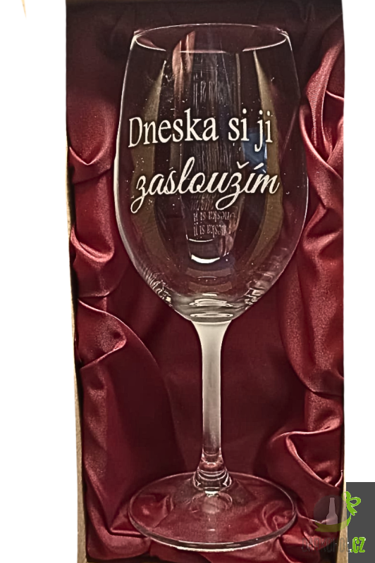 Ručně pískovaná sklenice na víno s textem ’’Dneska si ji zasloužím’’ o objemu 350ml.
