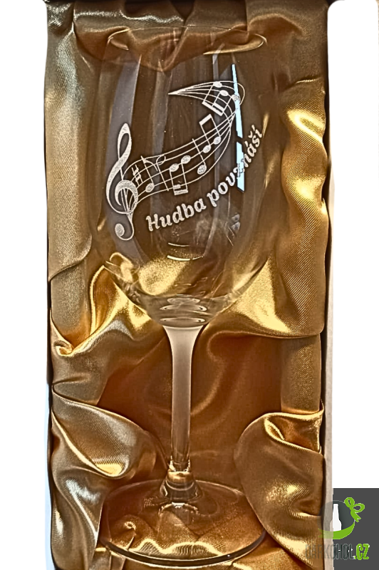Ručně pískovaná sklenice o objemu 0,35l s nápisem ’’Hudba povznáší’’.