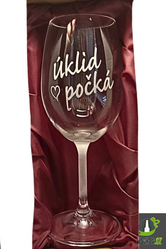 Ručně pískovaná sklenice na víno s textem ’’Úklid počká’’ o objemu 350ml.