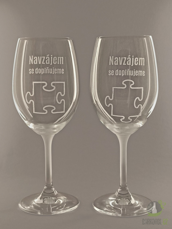 Ručně pískované sklenice na víno o objemu 0,3 l s nápisem "Navzájem se doplňujeme"