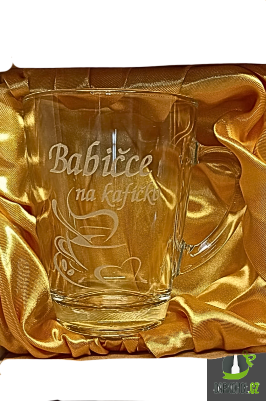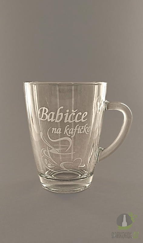 Ručně pískovaný skleněný hrnek ve tvaru Geo o objemu 0,35 l s nápisem "Babičce na kafíčko"