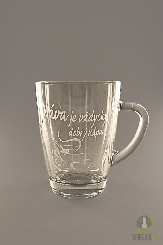 Ručně pískovaný skleněný hrnek ve tvaru Geo o objemu 0,35 l s nápisem "Káva je vždycky dobrý nápad""