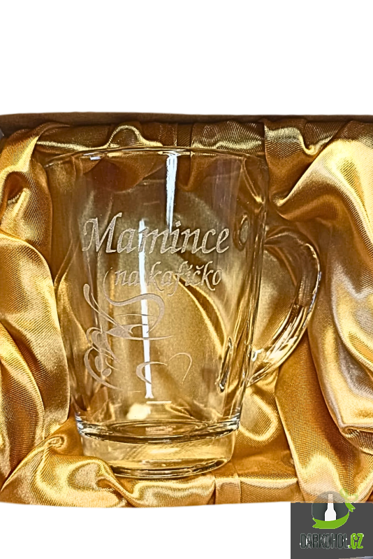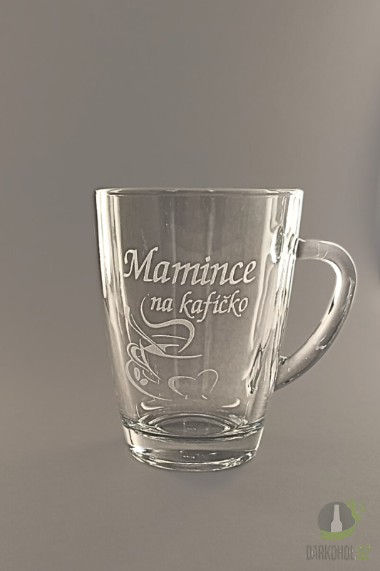 Ručně pískovaný skleněný hrnek ve tvaru Geo o objemu 0,35 l s nápisem "Mamince na kafíčko"