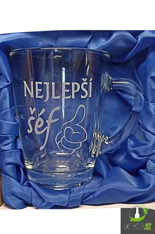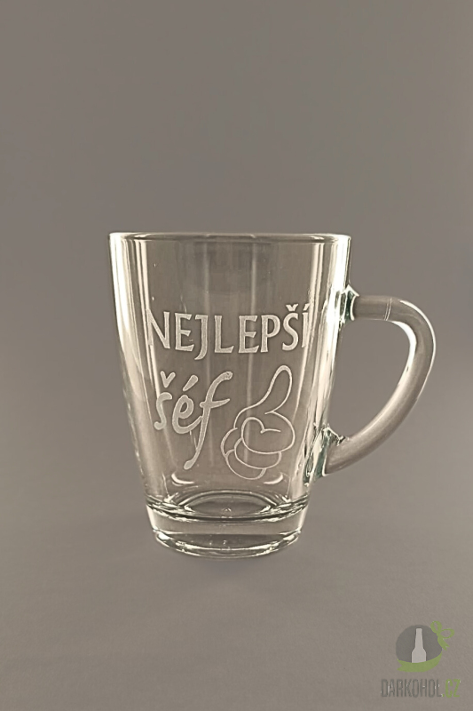 Ručně pískovaný skleněný hrnek ve tvaru Geo o objemu 0,35 l s nápisem "Nejlepší šéf"