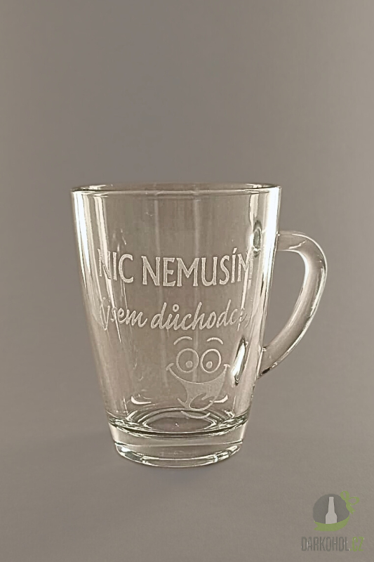 Ručně pískovaný skleněný hrnek ve tvaru Geo o objemu 0,35 l s nápisem "NIC NEMUSÍM"