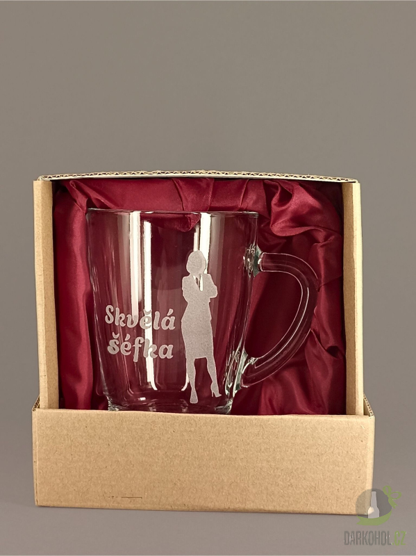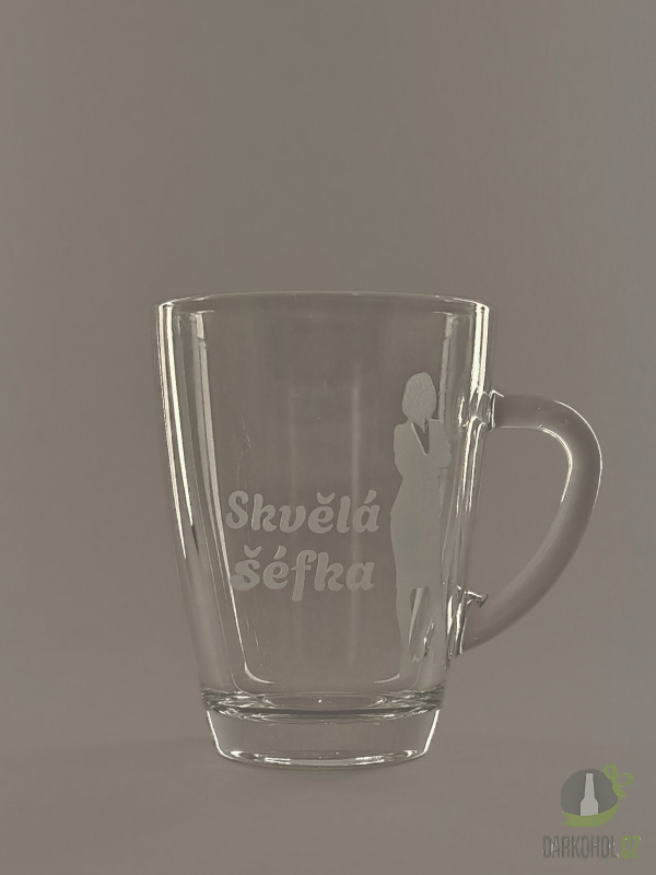 Ručně pískovaný skleněný hrnek ve tvaru Geo o objemu 0,35 l s nápisem "Šéfka"