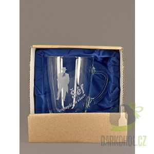 Ručně pískovaný skleněný hrnek ve tvaru Geo o objemu 0,35 l s nápisem "Šéf"