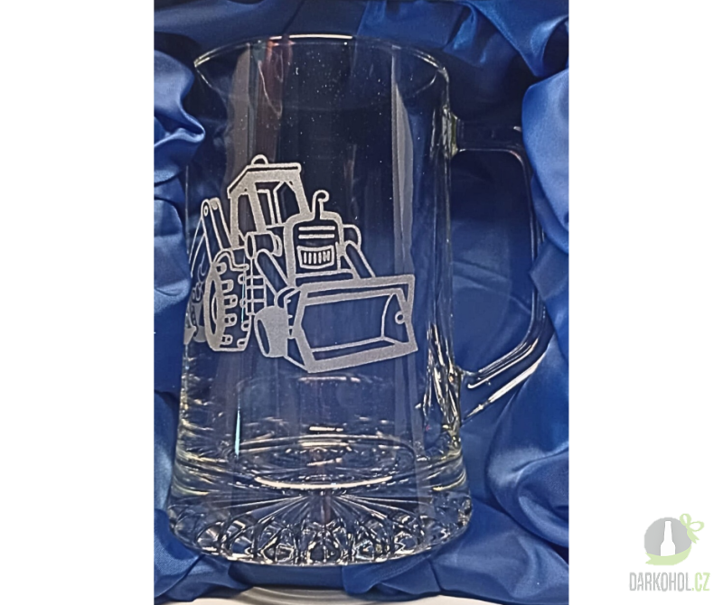 Ručně pískovaný skleněný půllitr ve tvaru půllitru s uchem o objemu 0,5 l s motivem Bagru