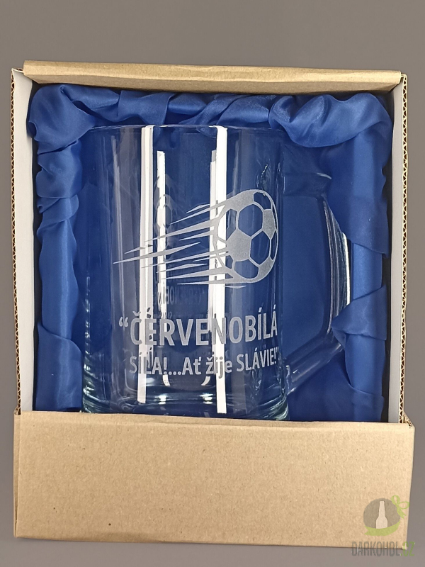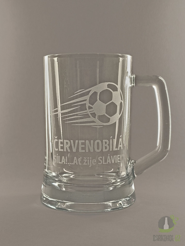 Ručně pískovaný skleněný půllitr ve tvaru půllitru s uchem o objemu 0,5 l s motivem Slávie