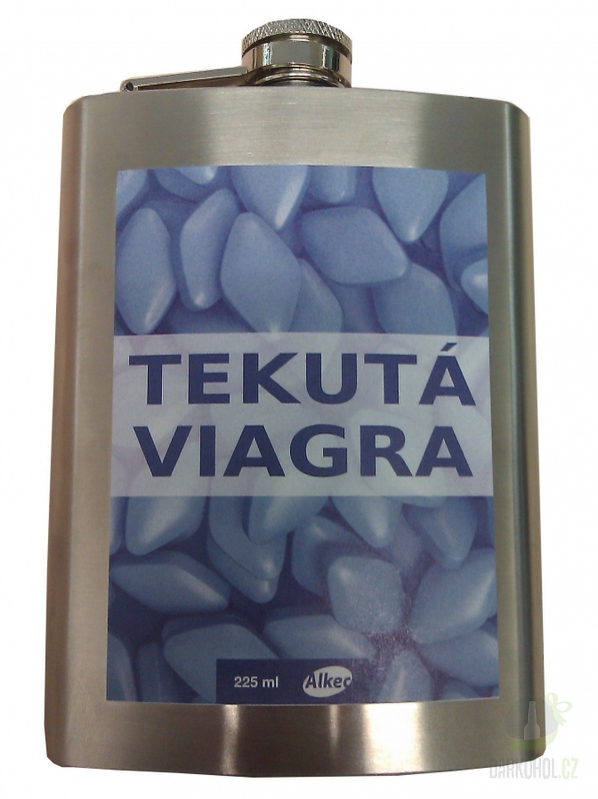 Žertovná kovová placatka - butylka s nápisem "Tekutá viagra".