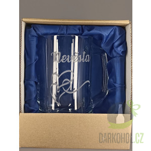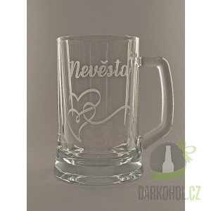 Ručně pískovaný skleněný půllitr ve tvaru půllitru s uchem o objemu 0,5 l s motivem Nevěsty