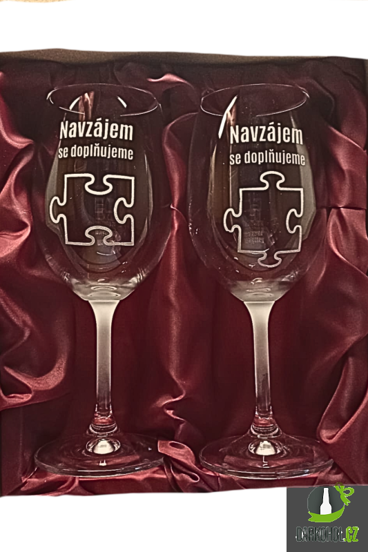 Ručně pískované sklenice na víno o objemu 0,3 l s nápisem "Navzájem se doplňujeme"