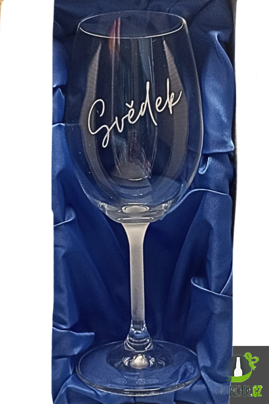 Ručně pískovaná sklenice na víno s textem ’’Svědek’’ o objemu 350ml.