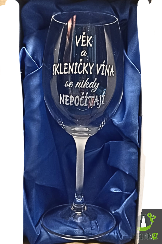 Ručně pískovaná sklenice o objemu 0,35l s nápisem ’’ Věk a skleničky vína se nikdy nepočítají’’