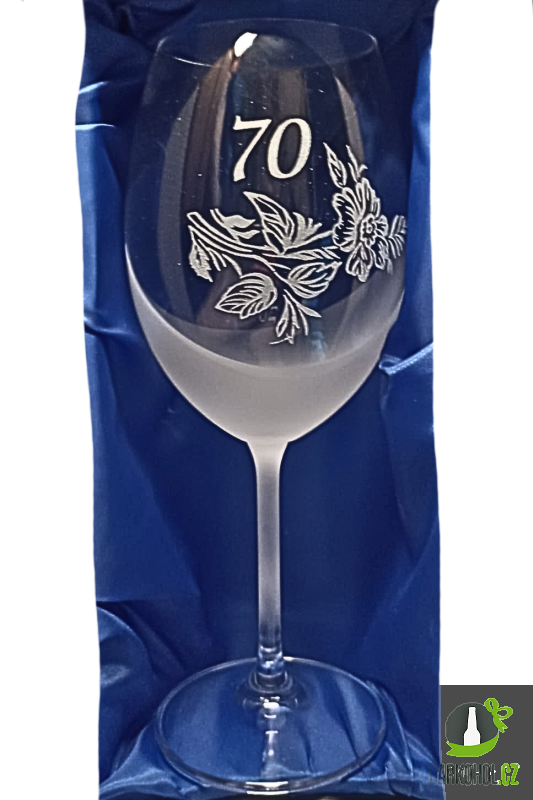 Ručně pískovaná sklenice o objemu 0,5 l s nápisem "70" s květinou
