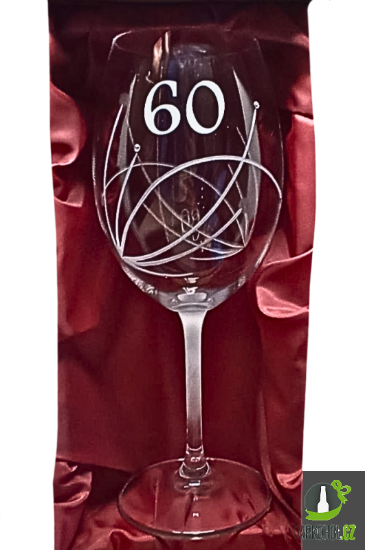 Ručně pískovaná sklenice o objemu 0,5 l s nápisem "60" s kamínky Swarovski