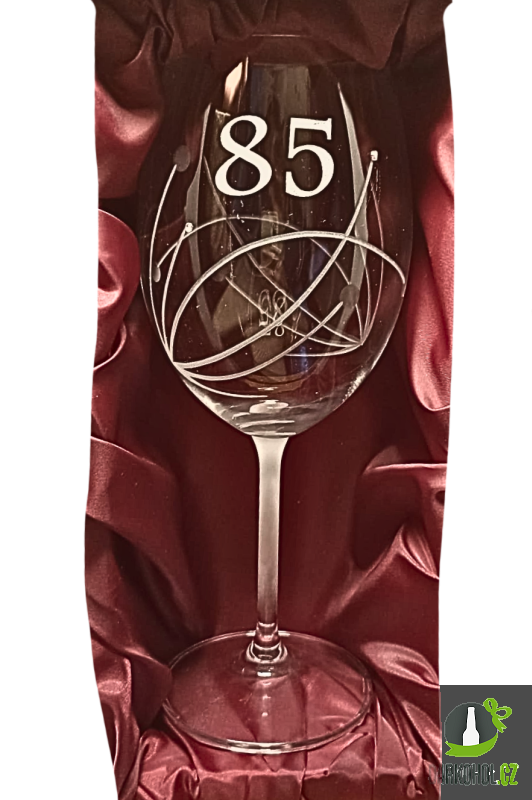 Ručně pískovaná sklenice o objemu 0,5 l s nápisem "85" s kamínky Swarovski