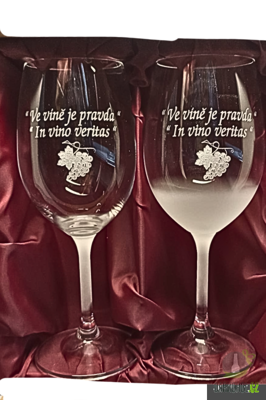 Ručně pískované sklenice na víno o objemu 0,3 l s nápisem "Ve víně je pravda,In vino veritas" s motivem Hroznu