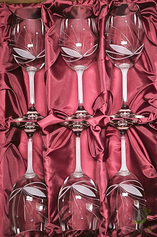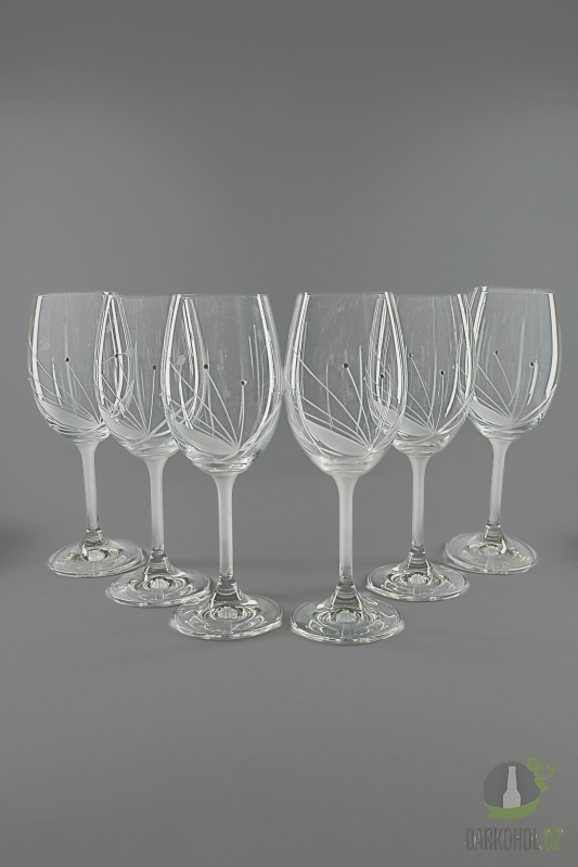 Ručně pískovaná skleněná sada sklenic na víno na stopce ve tvaru Gala o objemu 0,25 l s motivem Květu s kamínky