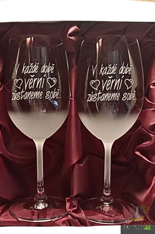 Ručně pískovaná sada sklenic o objemu 0,3 l s nápisem "V každé době věrni zůstaneme sobě" s motivem Srdce