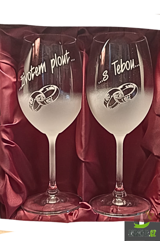 Ručně pískovaná sada sklenic o objemu 0,3 l s nápisem "Životem plout s tebou" s motivem Prstýnků